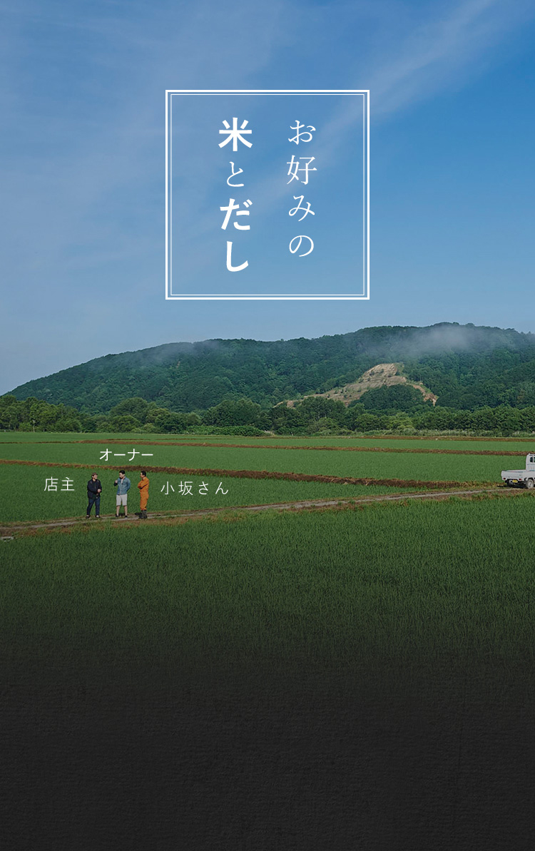 白米、発芽玄米からお選びいただけます。真っ白のつややかな白米と、プチプチした歯ごたえがたまらない発芽玄米。その日の気分や食べるお料理に合わせて、お好きな方をお選びください。